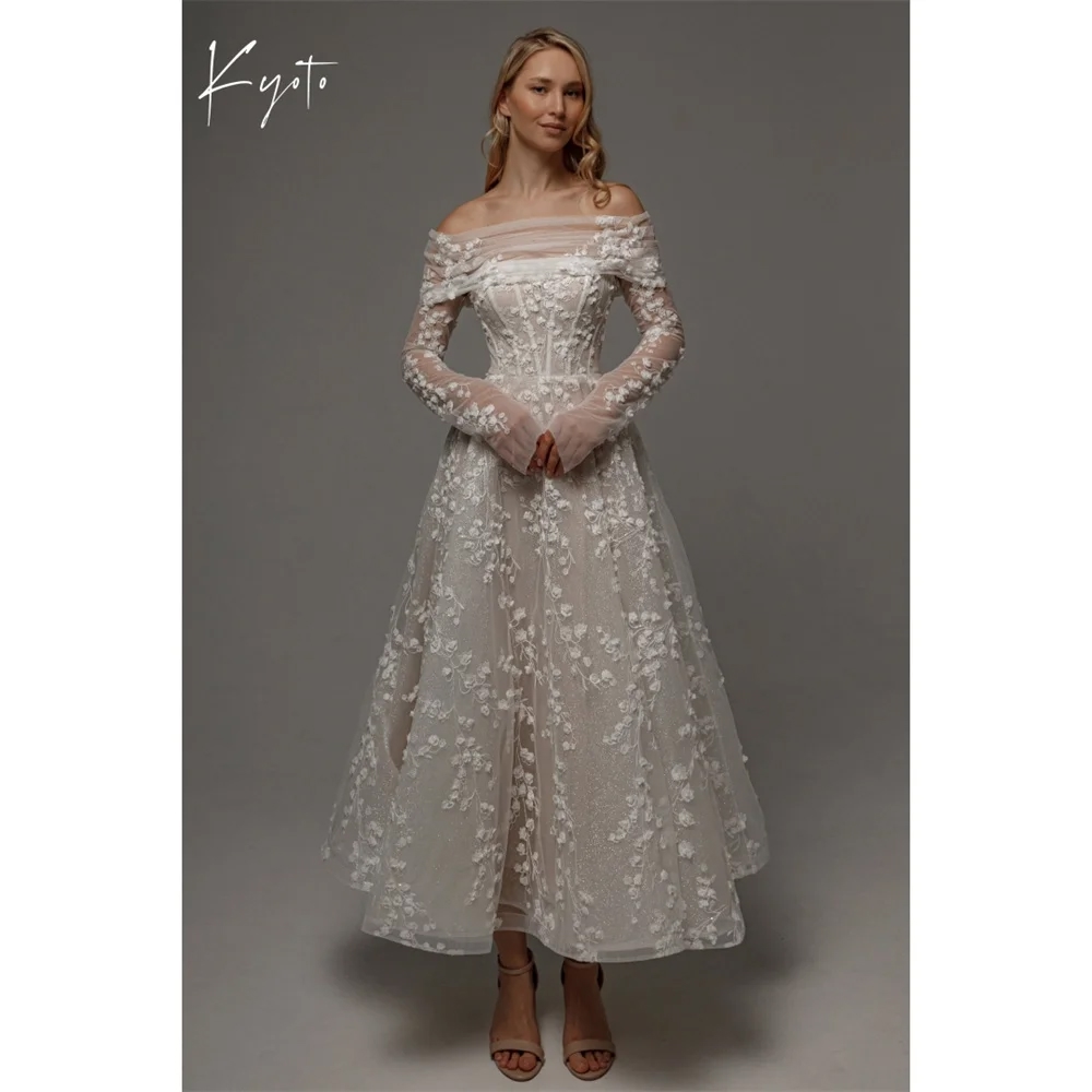 Платье длинной миди со съемными длинными рукавами. Открытый корсет, открывающий плечи и верх спинки . Юбка миди выглядит пышной за счет нескольких слоев ткани, сквозь которые пробивается блеск.
